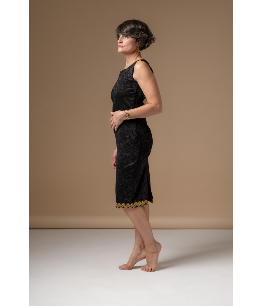 Black Jacquard Sheath Dress – Golden Edge Elegance