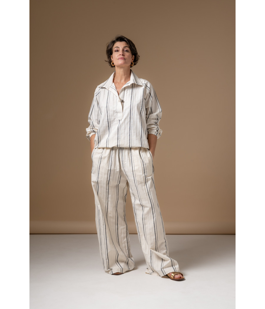 TOP Cream Linen and cotton TOP with Hand-Embroidered Gold Details – Effortless Chic