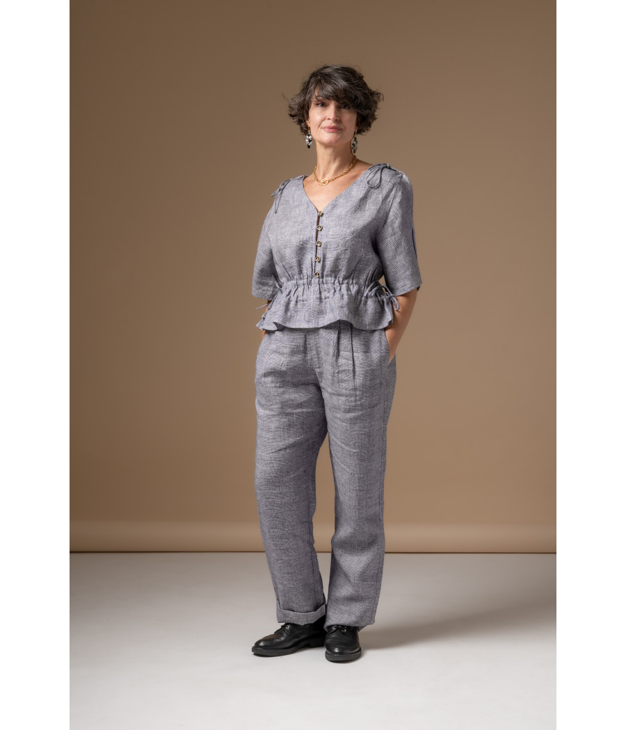 TOP Cream Linen and cotton TOP with Hand-Embroidered Gold Details – Effortless Chic